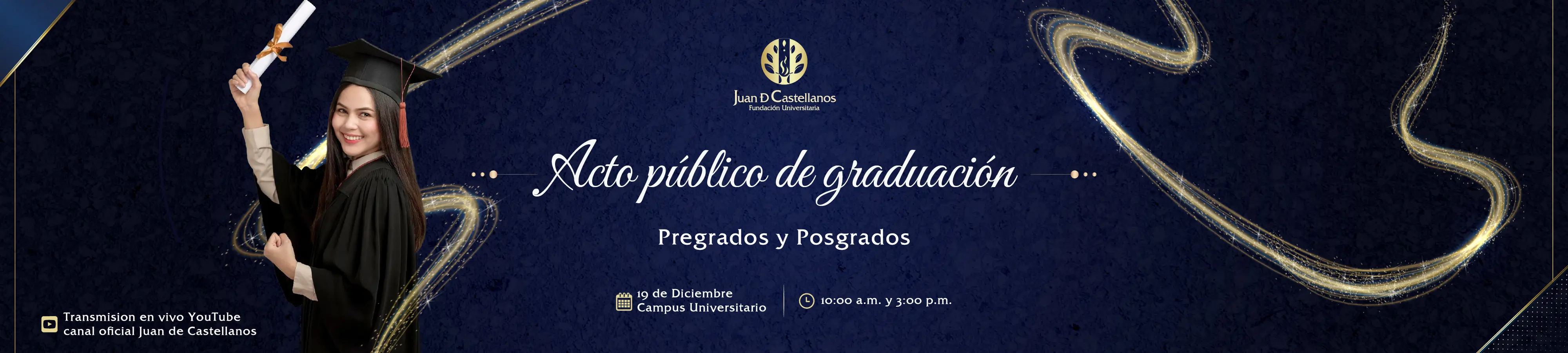 El próximo viernes 19 de diciembre, la Fundación Universitaria Juan de Castellanos realizará los Actos Públicos de Graduación, una jornada dedicada a exaltar el compromiso y la dedicación de los estudiantes