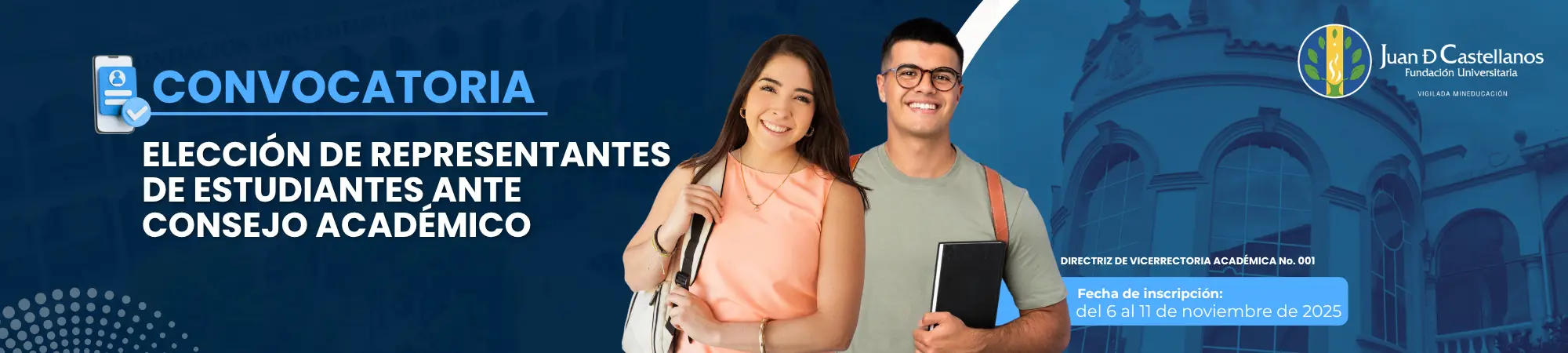 La Fundación Universitaria Juan de Castellanos invita a todos sus estudiantes a participar en las elecciones de representanteestudiantil ante el Consejo Académico.